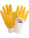 Rękawice ochronne X-CITAN z dzianiny bawełnianej powlekanej żółtym nitrylem w części chwytnej i w połowie części wierzchniej, zakończone ściągaczem z dzianiny.