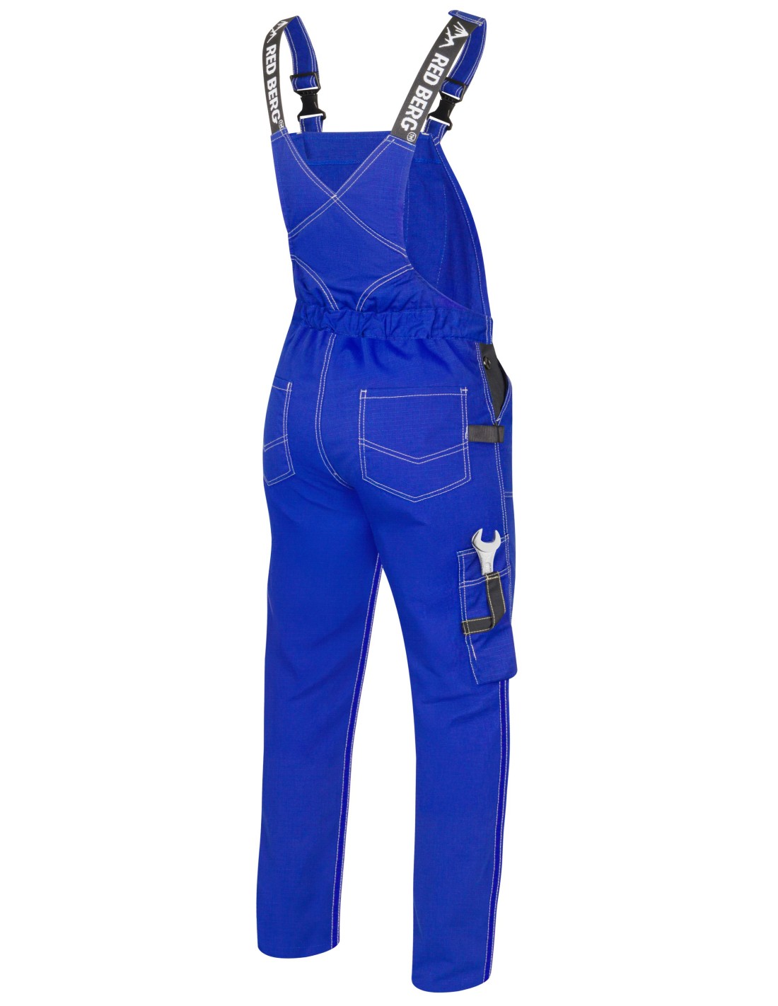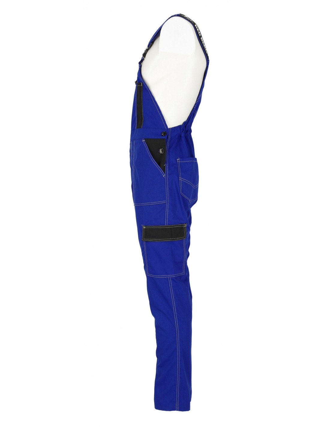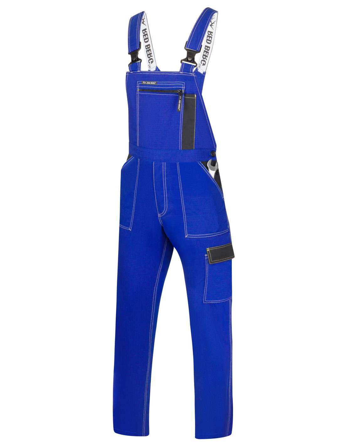 - Klasyczny krój spodni roboczych-ochronnych, wzbogacony o elementy charakterystyczne dla spodni dżinsowych – dwie płaskie kieszenie z tyłu. Dwie wzmocnione kieszenie boczne , duża kieszeń na udzie zapinana na patkę, na klatce piersiowej dużą kieszeń na dokumenty, zapinaną na zamek, podwójną kieszeń ma miarkę i również dwie szlufki na narzędzia.